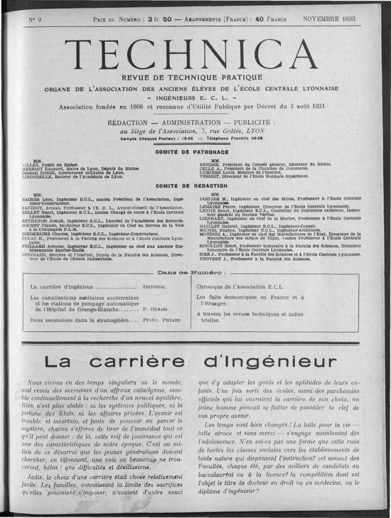 Association des Anciens Elèves de l'Ecole Centrale, Novembre 1933, 76 pages