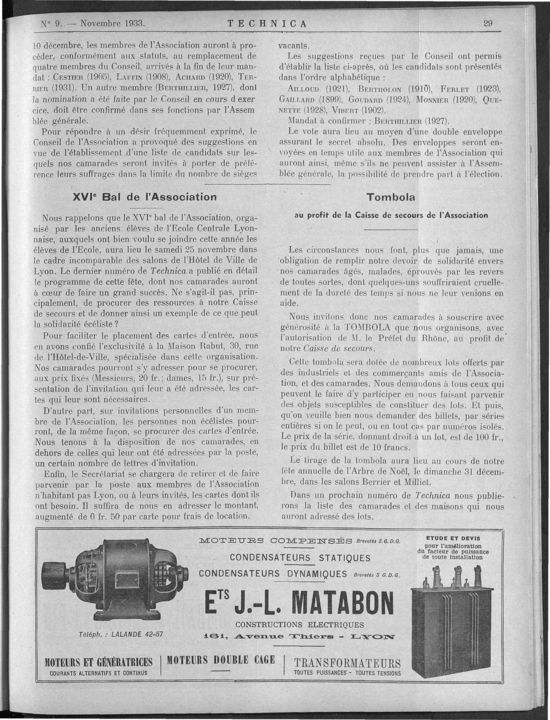 Association des Anciens Elèves de l'Ecole Centrale, Novembre 1933, 76 pages