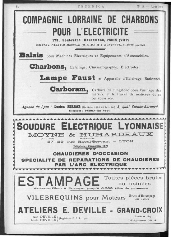 Association des Anciens Elèves de l'Ecole Centrale, Août 1934, 44 pages