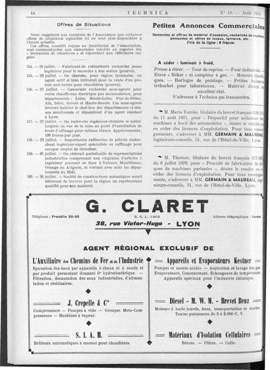 Association des Anciens Elèves de l'Ecole Centrale, Août 1934, 44 pages