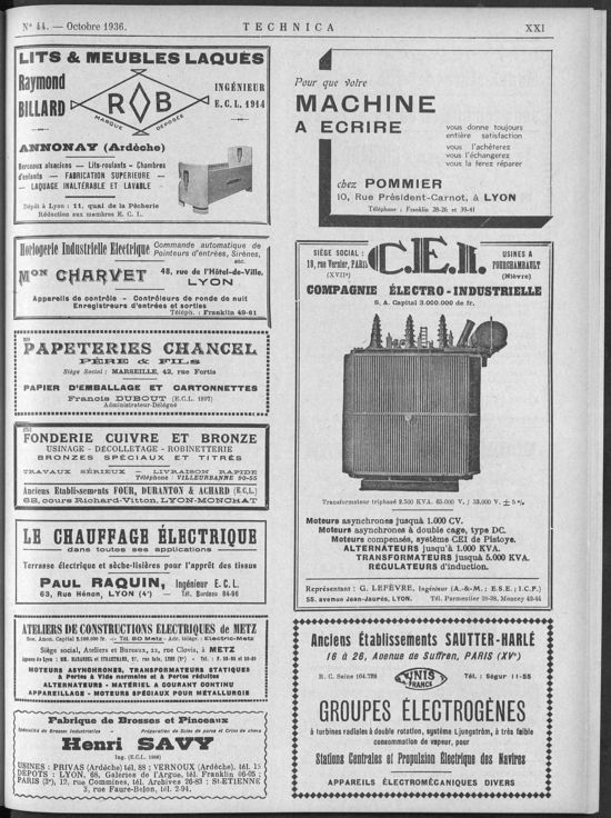 Association des Anciens Elèves de l'Ecole Centrale, Octobre 1936, 54 pages