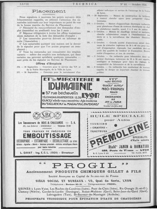 Association des Anciens Elèves de l'Ecole Centrale, Octobre 1936, 54 pages