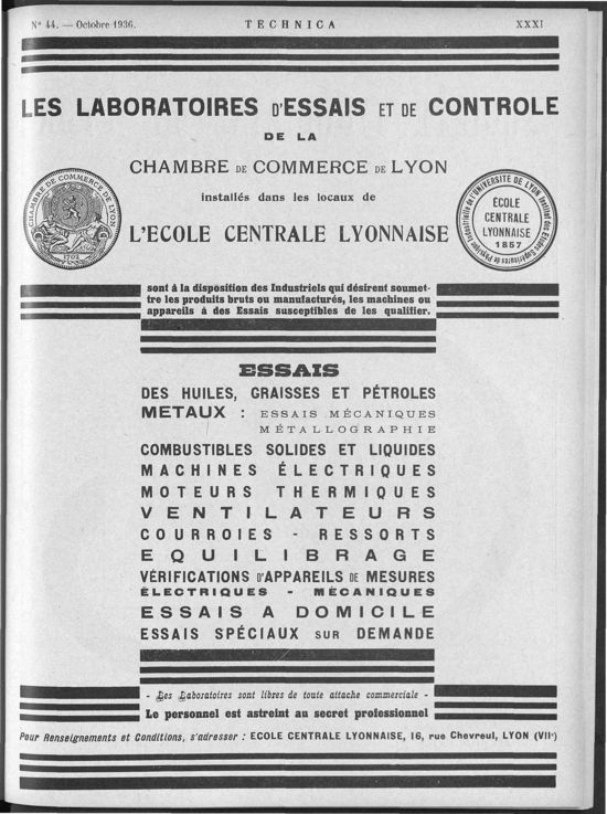 Association des Anciens Elèves de l'Ecole Centrale, Octobre 1936, 54 pages
