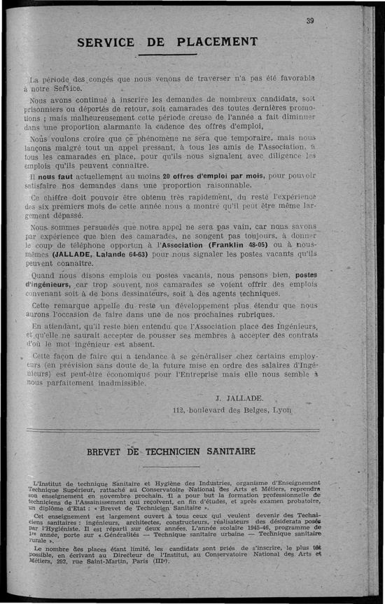 Association des Anciens Elèves de l'Ecole Centrale Lyonnaise, Octobre 1945, 44 pages