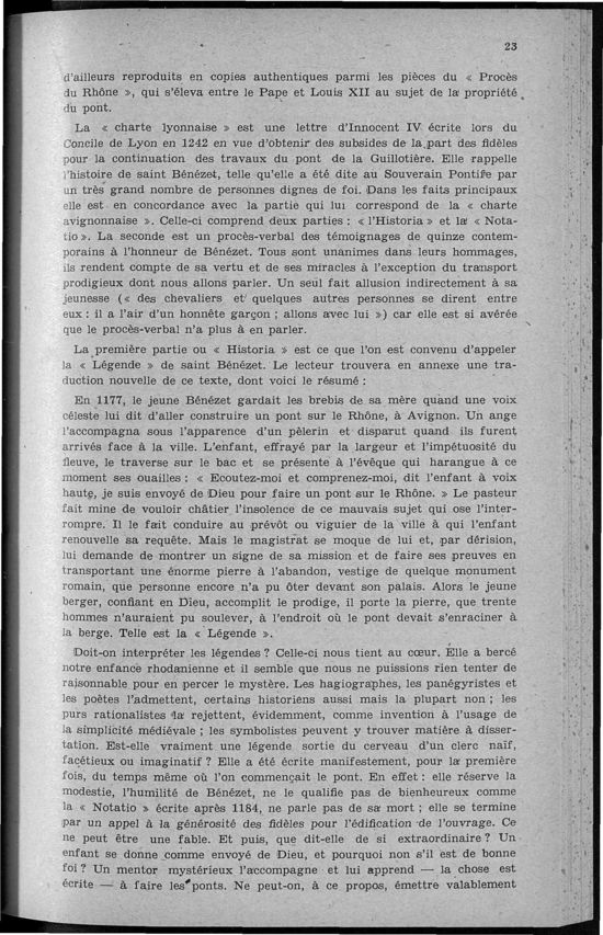 Histoire de Saint Bénézet d'aprèe "l'historia" du manuscrit d'Avignon